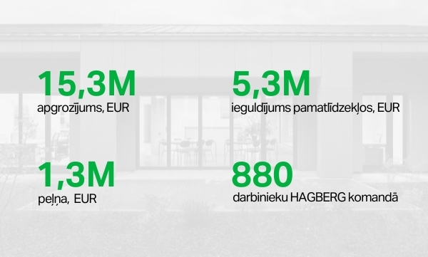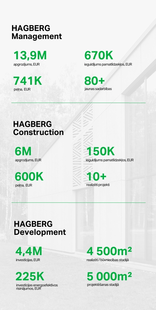 Par HAGBERG nepārtrauktu attīstību un savas tirgus pozīcijas stiprināšanu liecina arī 5,3 miljonu eiro liels ieguldījums uzņēmumu grupas pamatlīdzekļos un nekustamā īpašuma attīstības projektos.